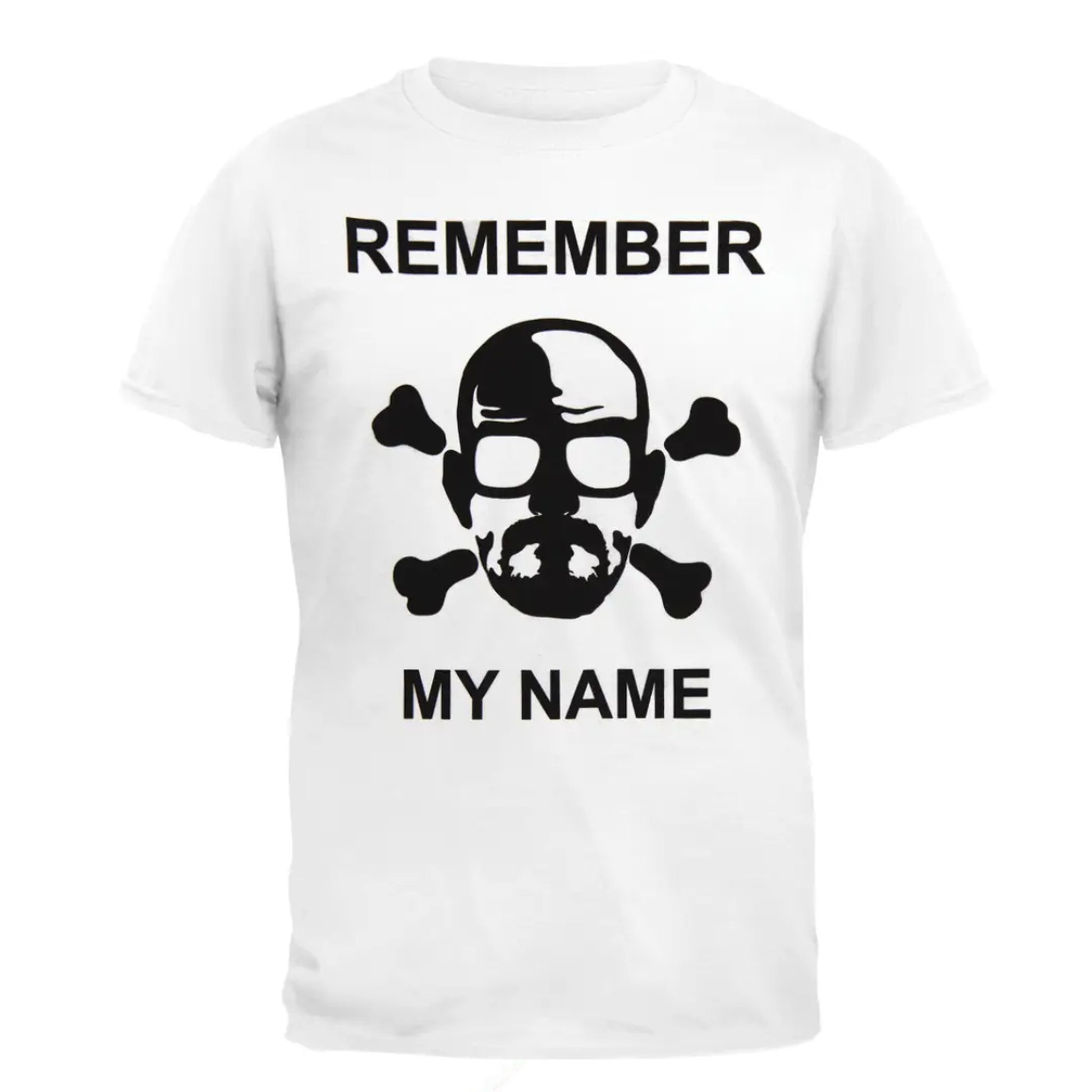 Channel your inner Heisenberg with this Breaking Bad "Remember My Name" t-shirt. Made from high-quality material, this shirt is both comfortable and stylish. Show off your love for the iconic series and keep the memory of Walter White alive with this must-have addition to any fan's wardrobe.